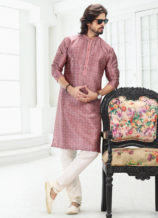 Kurta Pyjama Banarasi Silk Pink Digital