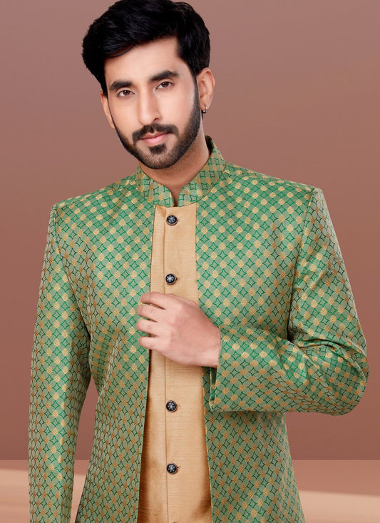 Indo Western Silk Green Embroidered Mens
