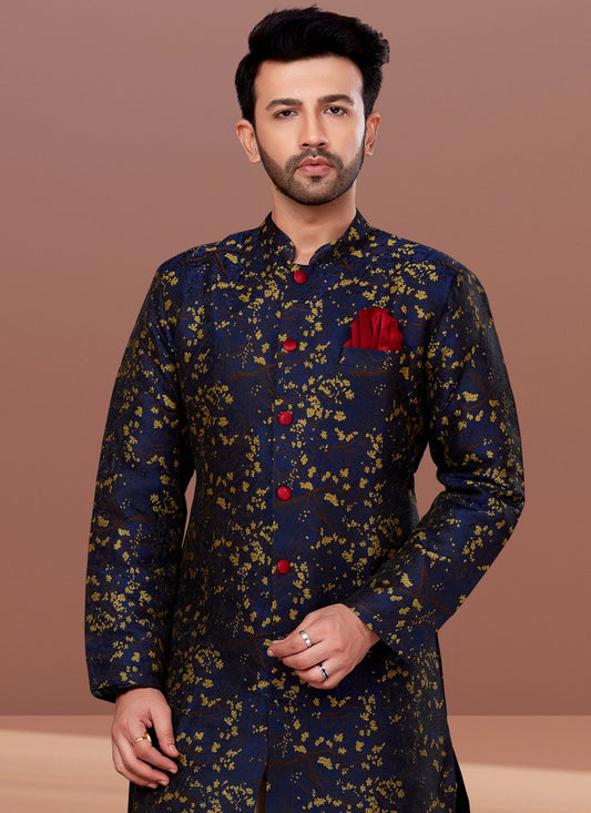 Indo Western Jacquard Blue Red Fancy