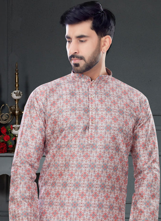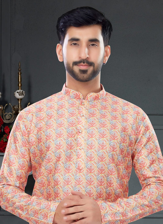 Kurta Pyjama Cotton Jacquard Peach Fancy