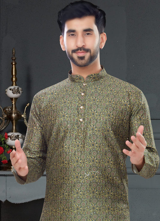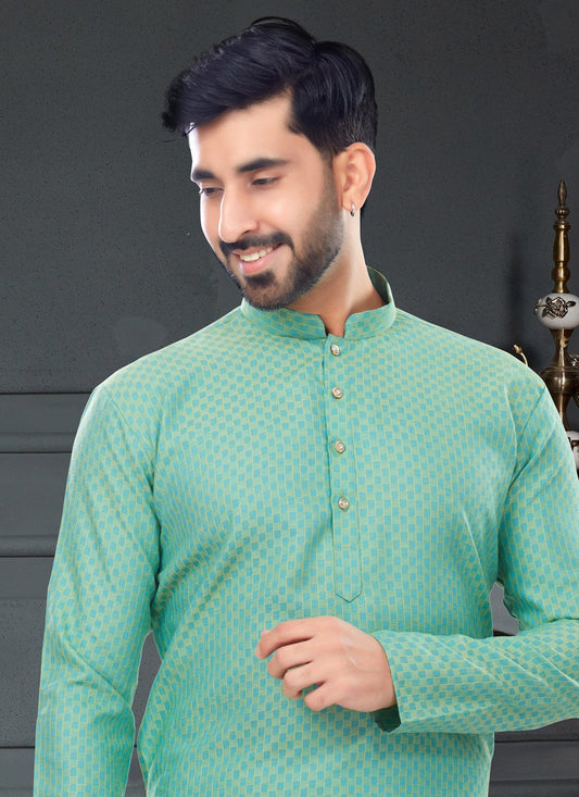 Kurta Pyjama Cotton Jacquard Green Fancy