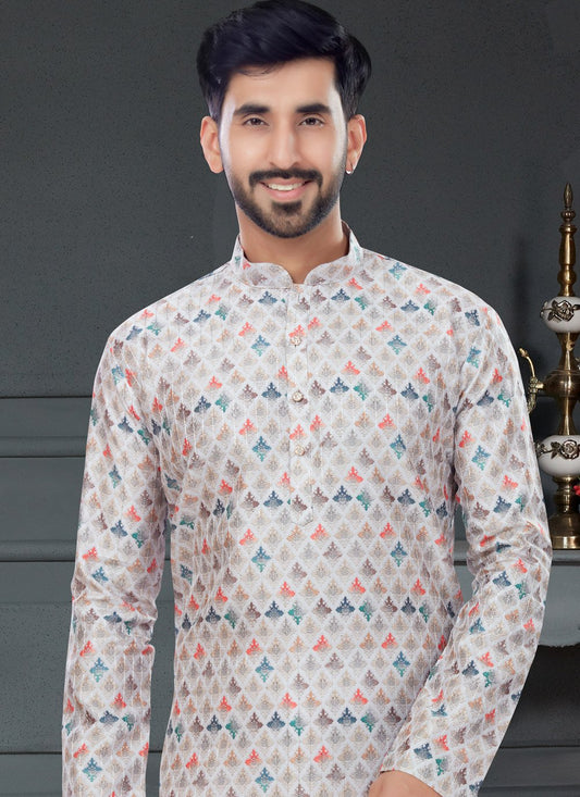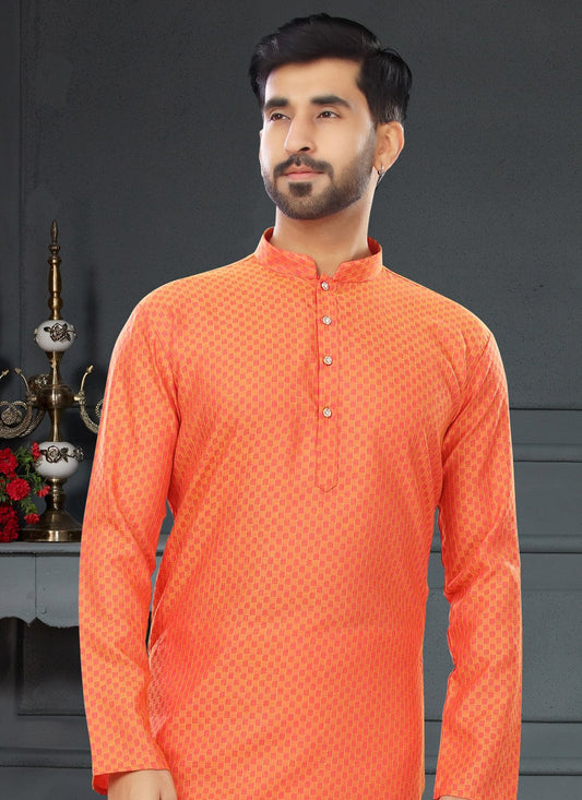 Kurta Pyjama Cotton Jacquard Orange Fancy