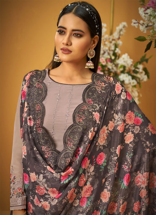 Palazzo Salwar Suit Georgette Grey Embroidered