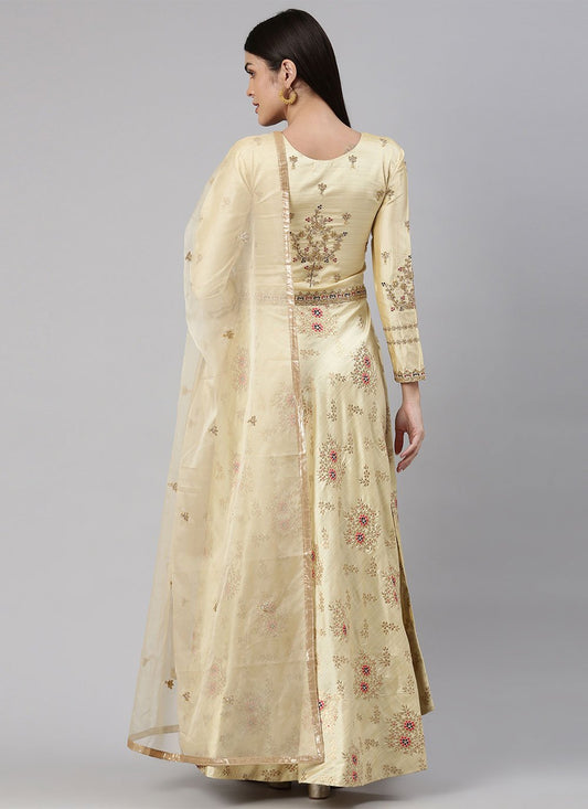 Gown Banarasi Jacquard Cream Embroidered Gown