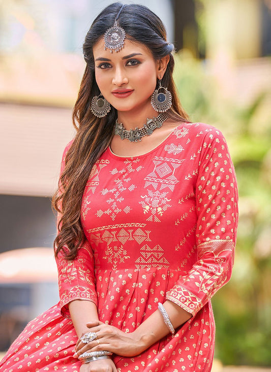 Gown Georgette Pink Print Gown