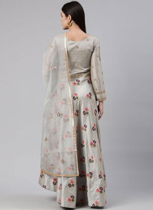 Gown Banarasi Jacquard Grey Embroidered Gown