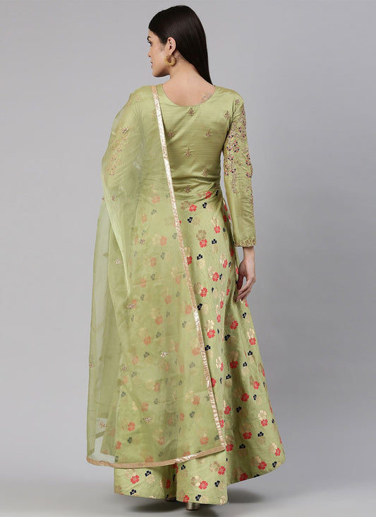 Designer Gown Banarasi Jacquard Green Embroidered
