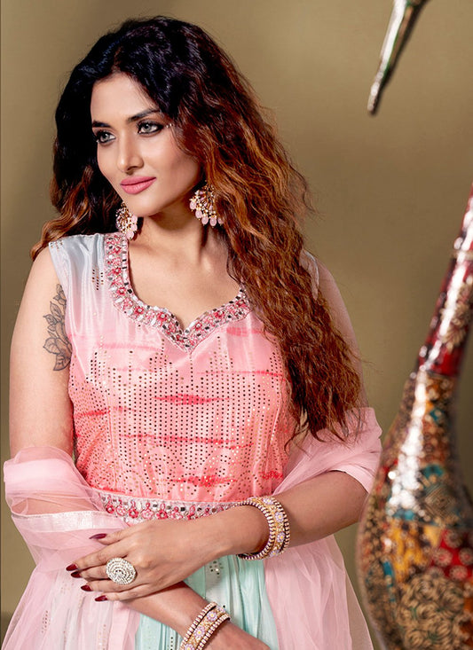 Designer Gown Georgette Aqua Blue Print