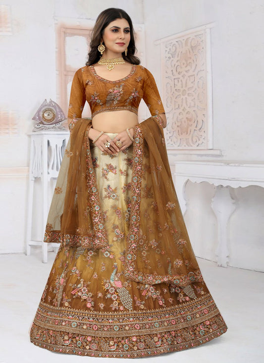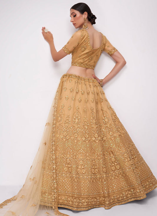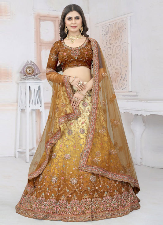 Lehenga Choli Net Mustard Embroidered Lehenga