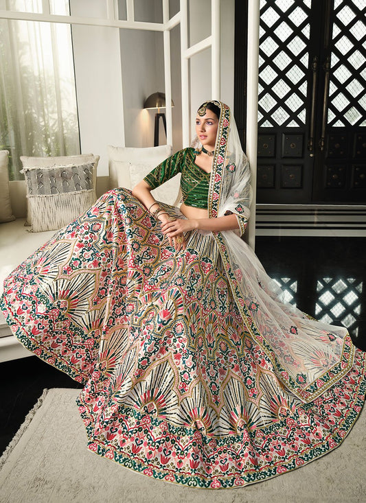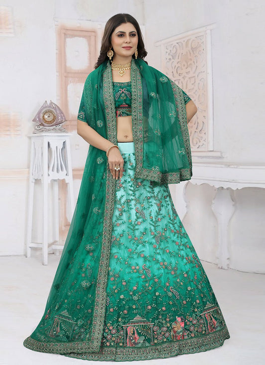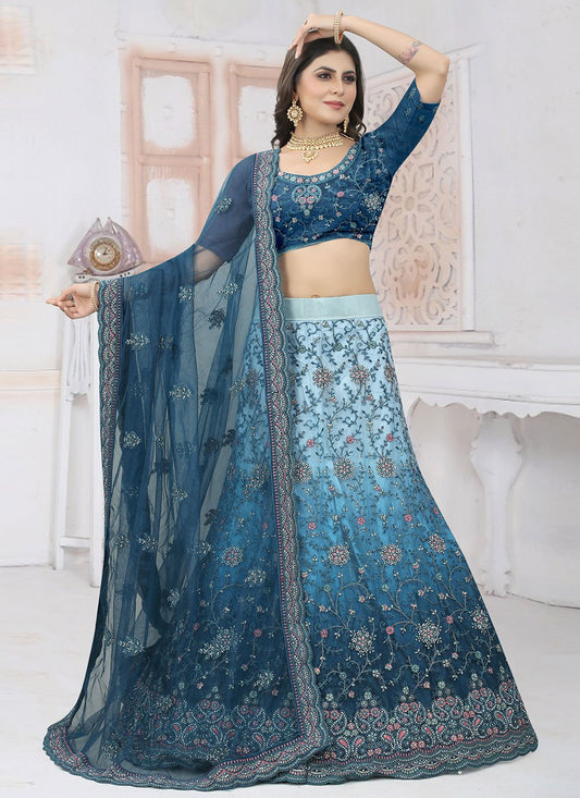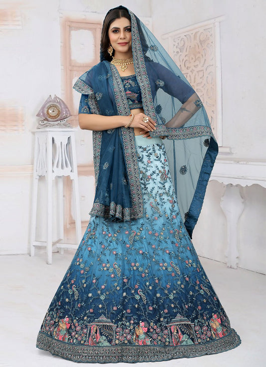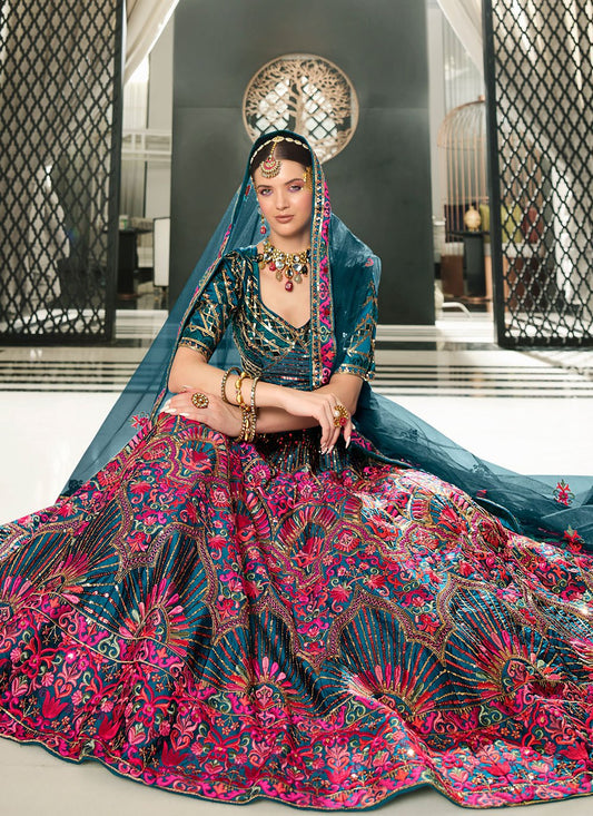 Lehenga Choli Silk Teal Embroidered Lehenga