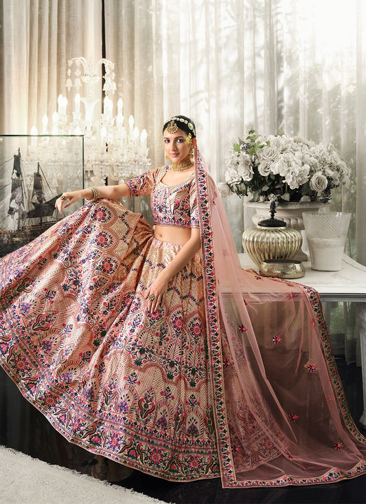 Lehenga Choli Silk Peach Embroidered Lehenga