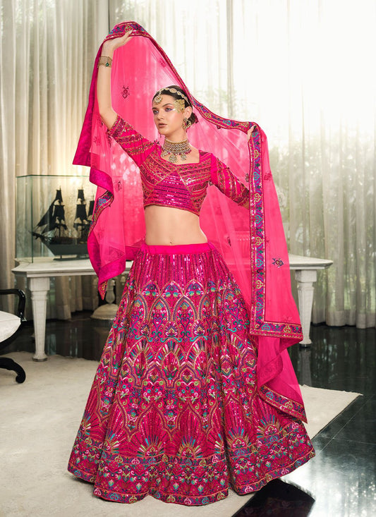 Lehenga Choli Silk Pink Embroidered Lehenga