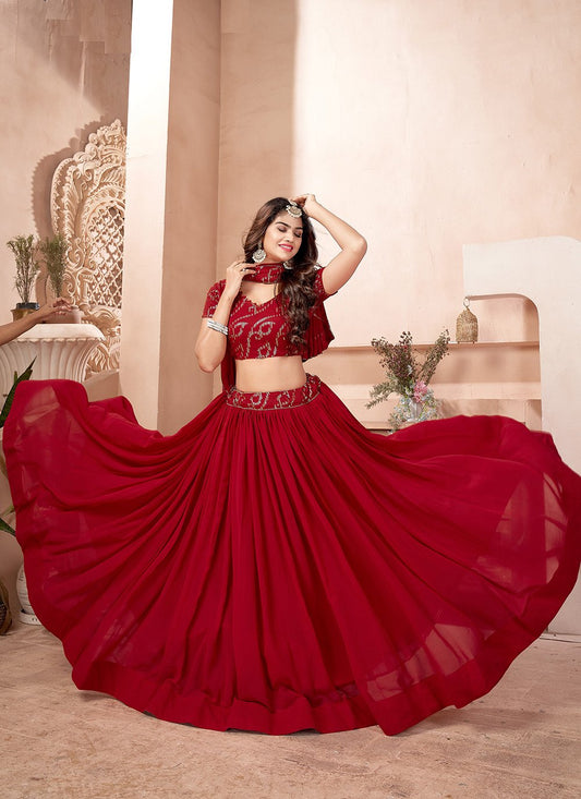 A Line Lehenga Faux Georgette Red