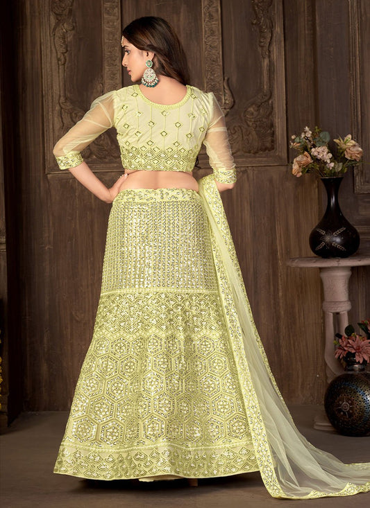 Lehenga Choli Net Green Embroidered Lehenga