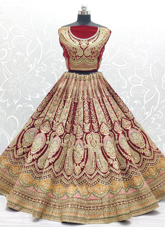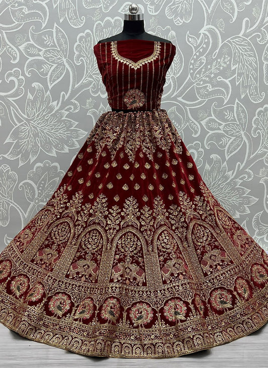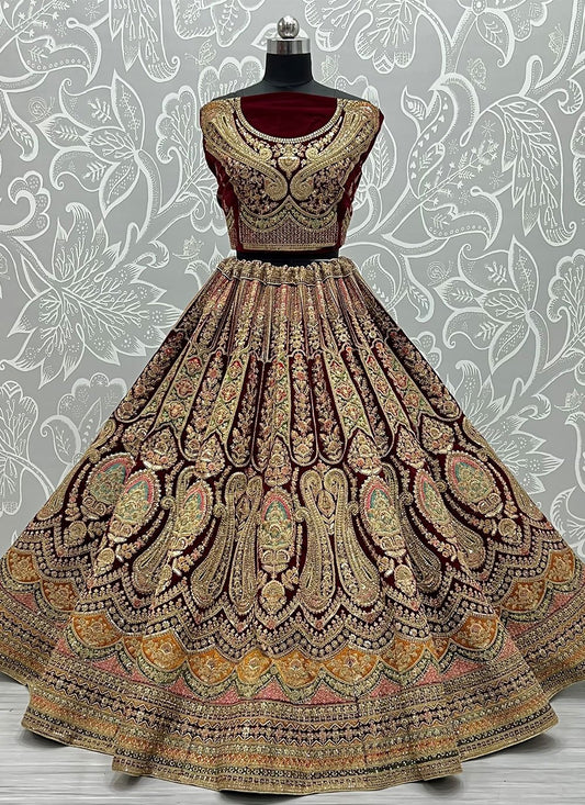 Lehenga Choli Velvet Maroon Diamond Lehenga