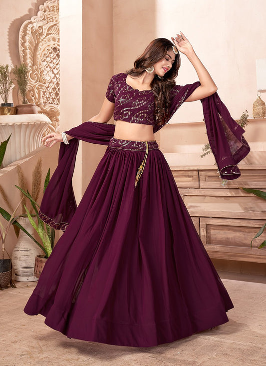 A Line Lehenga Faux Georgette Purple