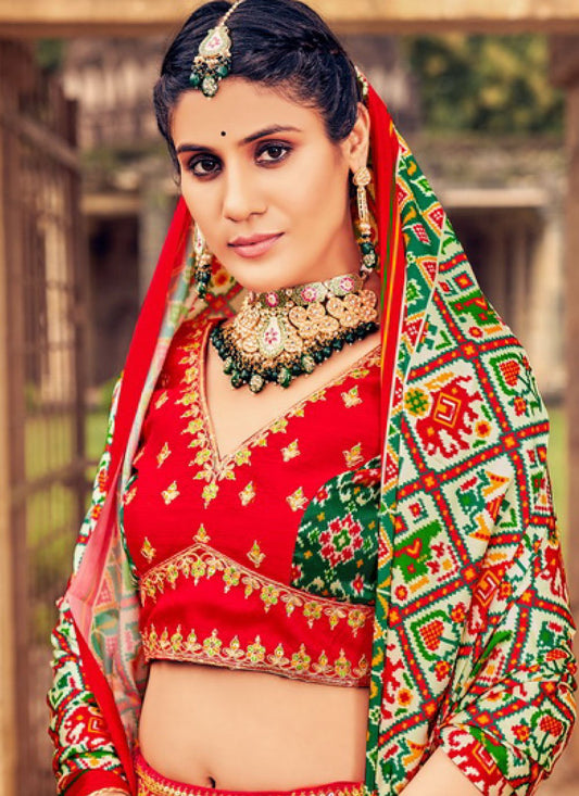 Lehenga Choli Silk Red Embroidered Lehenga