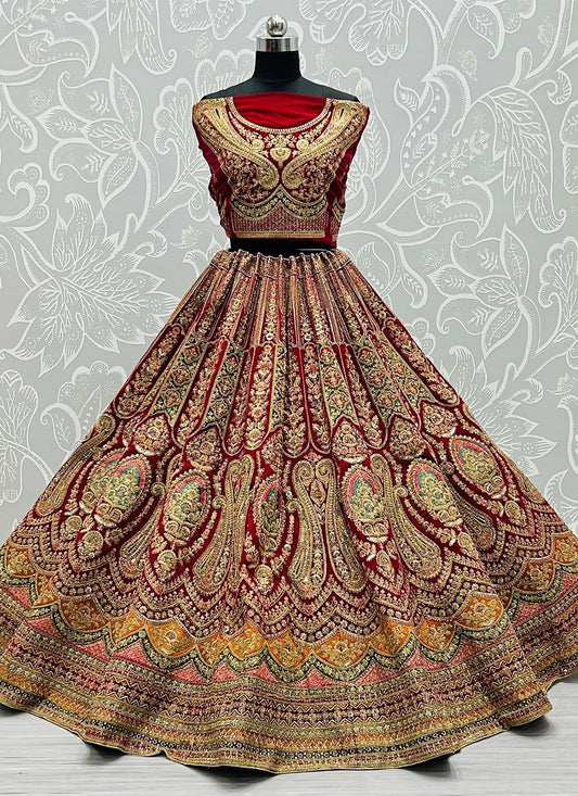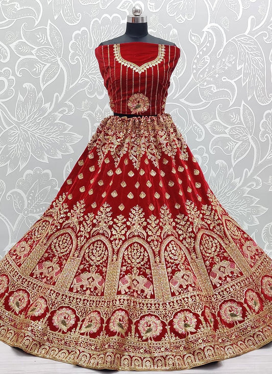 Lehenga Choli Velvet Red Diamond Lehenga