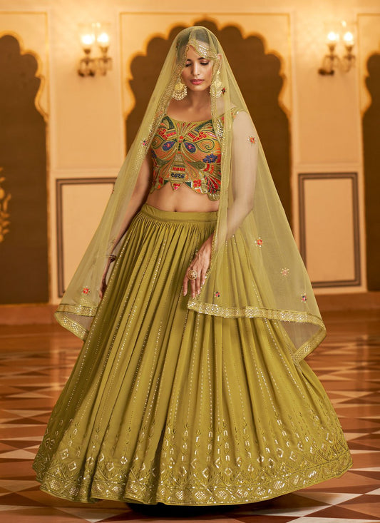 Lehenga Choli Georgette Green Embroidered Lehenga