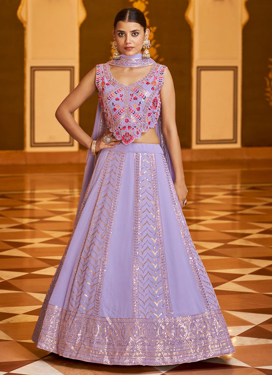 Lehenga Choli Georgette Lavender Embroidered Lehenga