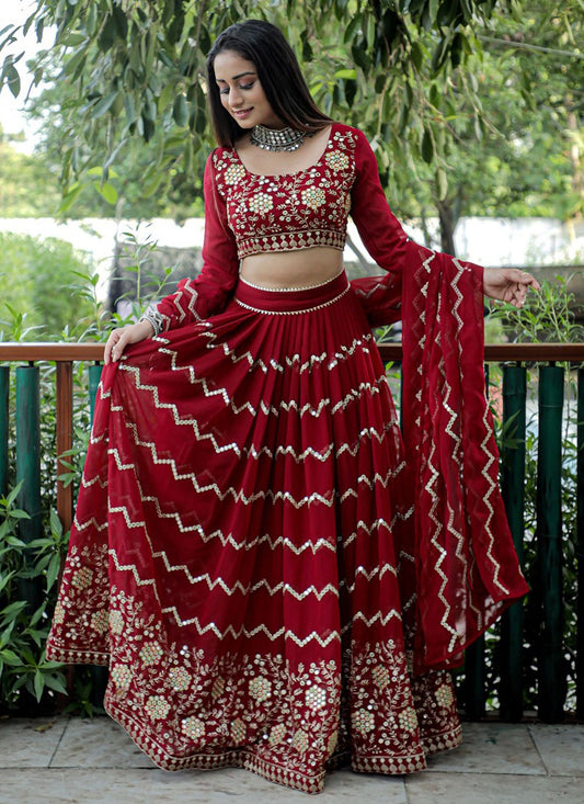 Lehenga Choli Georgette Peach Embroidered Lehenga