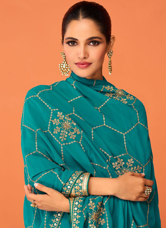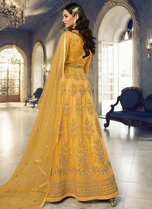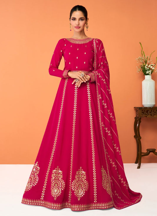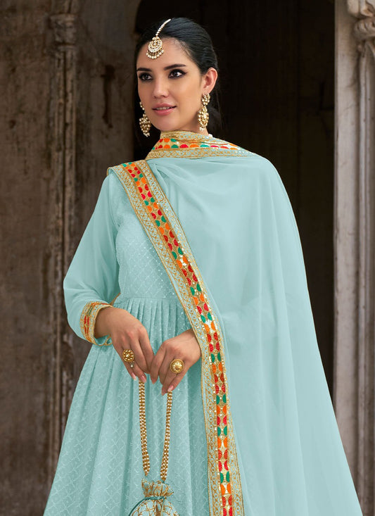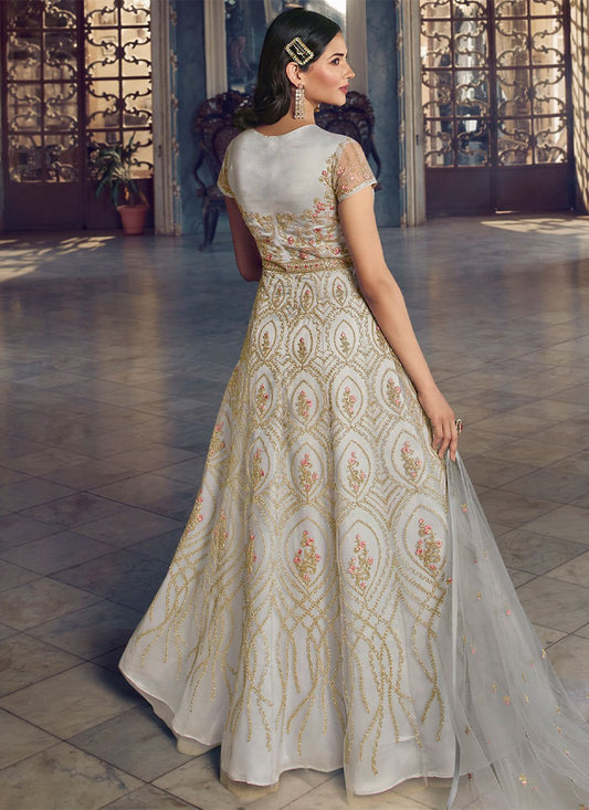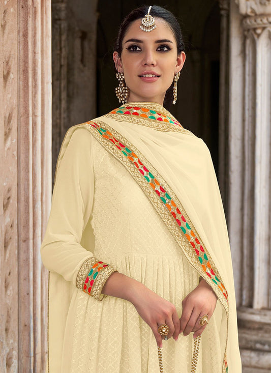 Anarkali Suit Georgette Cream Embroidered Salwar