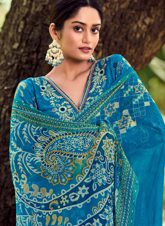 Pant Style Suit Cotton Blue Lucknowi