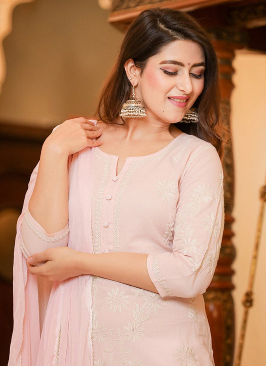 Salwar Suit Cotton Peach Lucknowi Work