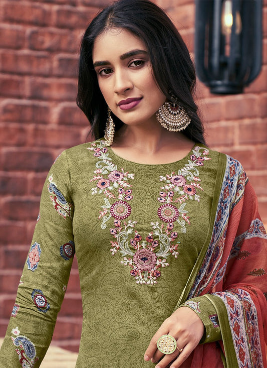 Straight Salwar Suit Cotton Green Embroidered