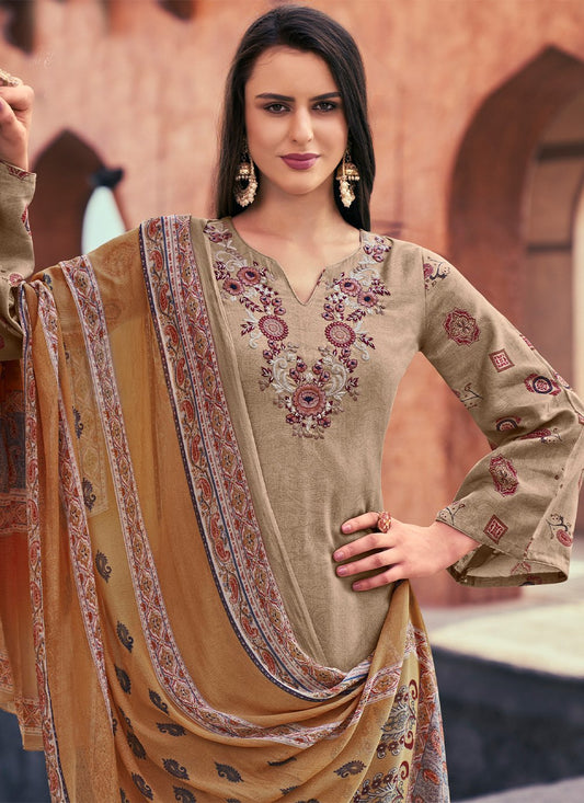 Salwar Suit Cotton Khaki Print Salwar