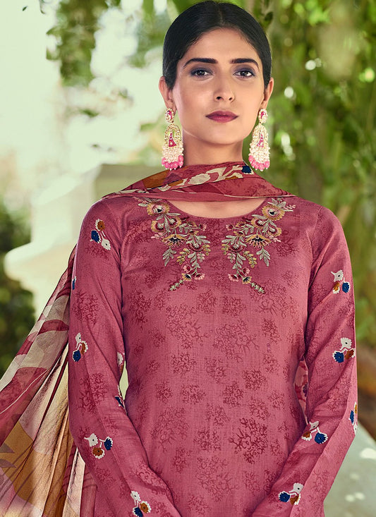 Pant Style Suit Cotton Pink Embroidered
