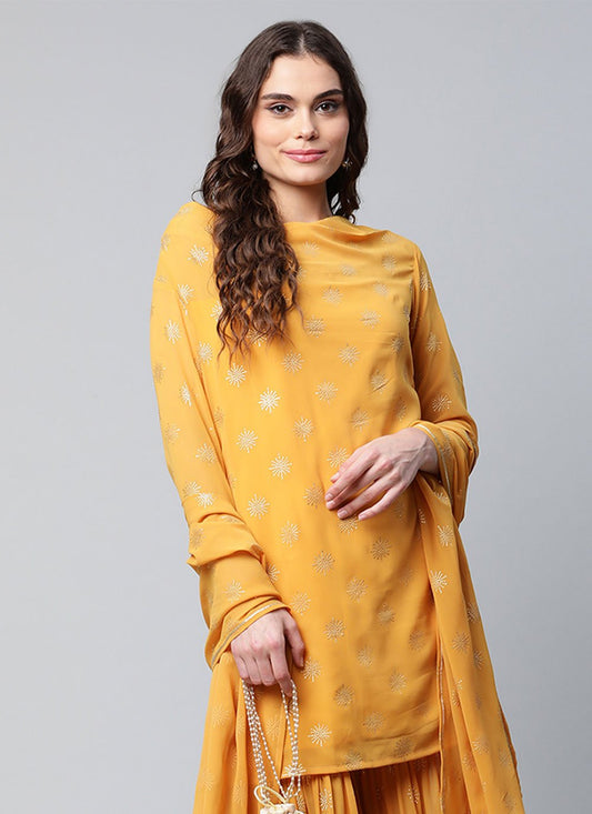 Palazzo Salwar Suit Georgette Mustard Foil