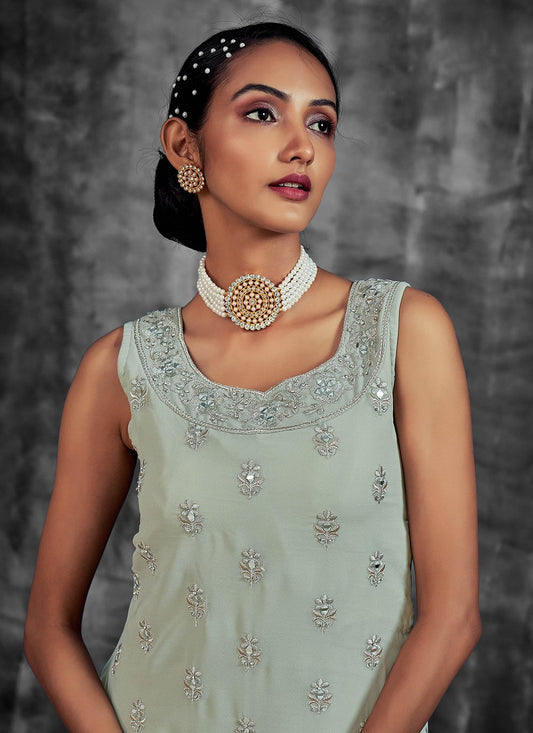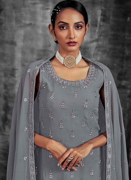 Palazzo Salwar Suit Georgette Grey Mirror
