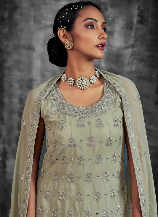 Salwar Suit Georgette Green Mirror Salwar