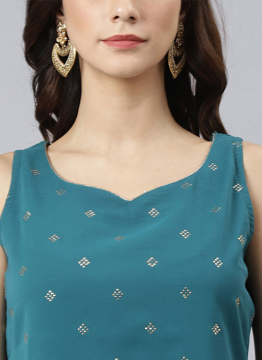 Salwar Suit Georgette Teal Mirror Salwar
