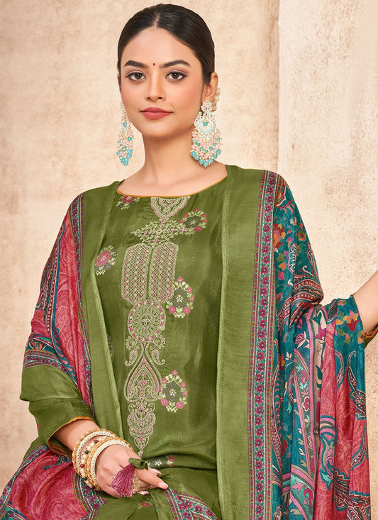 Churidar Suit Jacquard Brown Embroidered Salwar