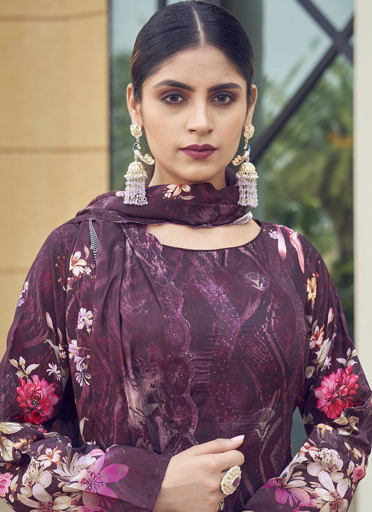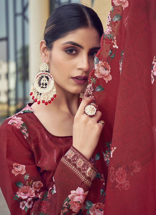 Salwar Suit Muslin Maroon Digital Print