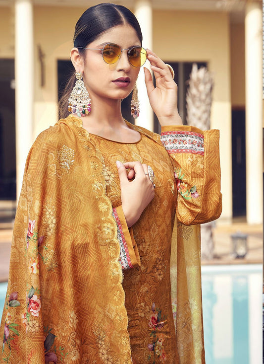 Straight Salwar Suit Muslin Mustard Digital
