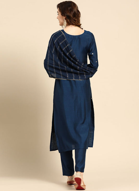 Punjabi Salwar Suit Muslin Blue Embroidered