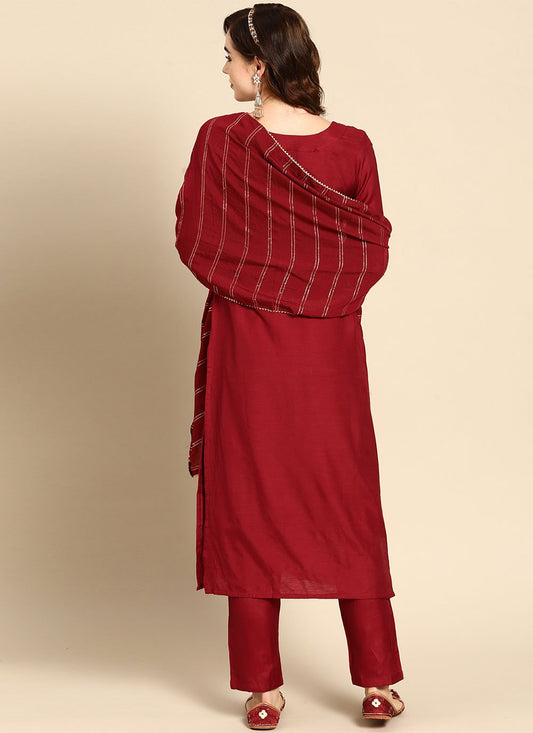 Salwar Suit Muslin Maroon Embroidered Salwar