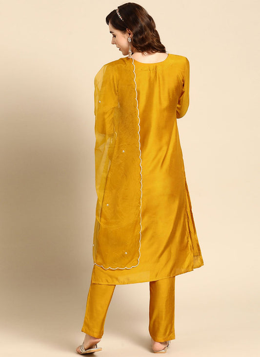 Salwar Suit Muslin Mustard Embroidered Salwar