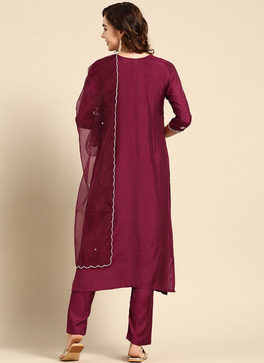Punjabi Salwar Suit Muslin Magenta Embroidered