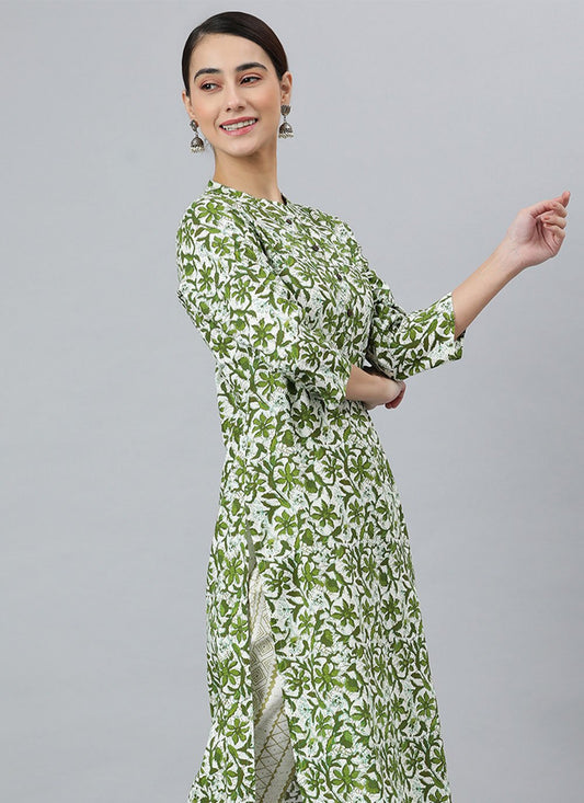Salwar Suit Rayon Green Floral Patch
