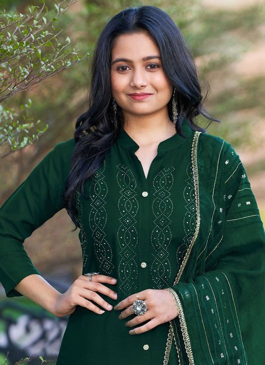 Salwar Suit Rayon Green Sequins Salwar