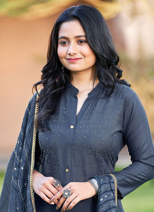 Readymade Style Rayon Grey Sequins Salwar