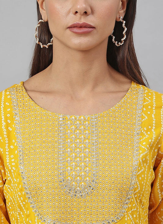 Readymade Style Rayon Yellow Embroidered Salwar