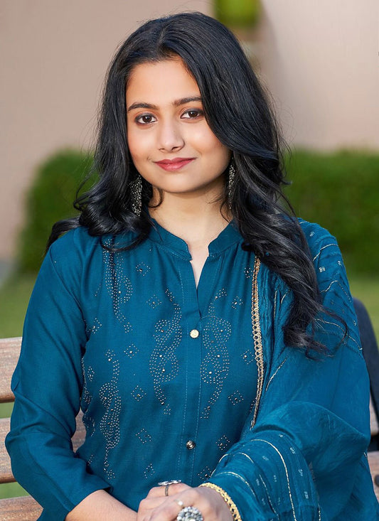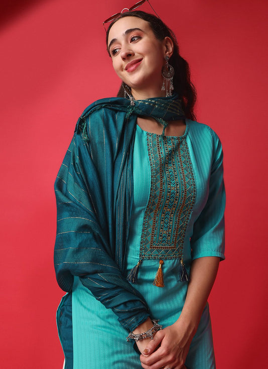 Salwar Suit Rayon Viscose Turquoise Embroidered