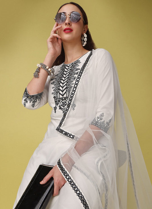 Salwar Suit Rayon White Embroidered Salwar