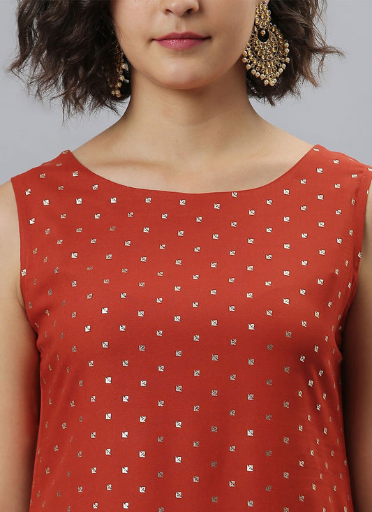 Salwar Suit Rayon Orange Foil Print