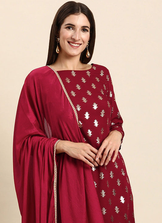 Salwar Suit Rayon Wine Foil Print